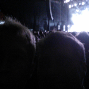 Vi stod på tribunen nesten rett ved siden av scenen og fikk hele lyden i retur fra enden av den nederlandske fotballarenaen som har et tak som kan åpnes og lukkes.