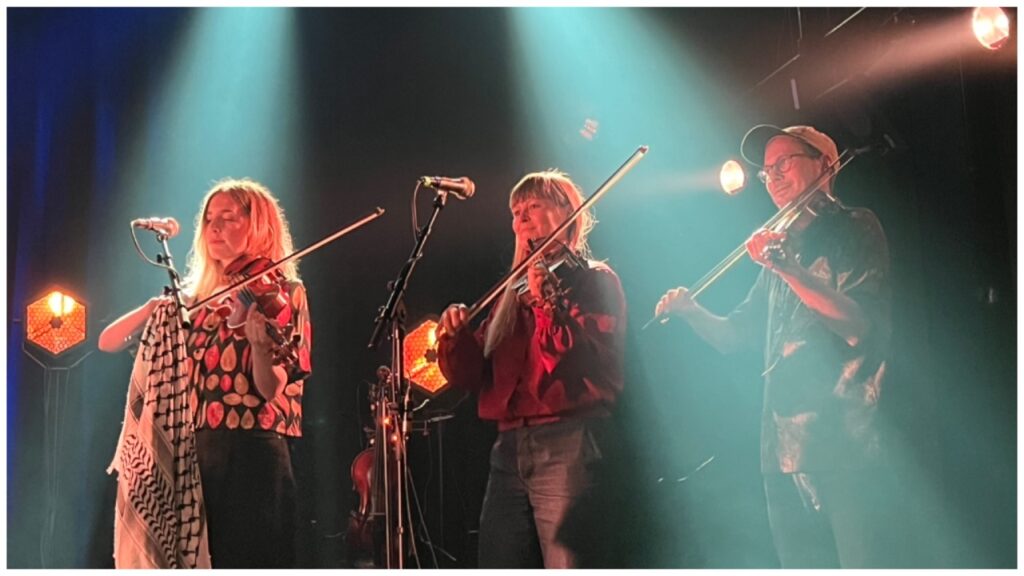 Som overskriften antyder, fikk fela mye plass i lydbildet stort sett gjennom hele konserten. Tidvis var det hele tre feler som, side ved side, satte sitt avtrykk på musikken som strømmet mot publikum. Noe som naturlig nok tilførte musikken en herlig miks av noe som kan beskrives som melodiøs, rocka folkemusikk iført olabukser og Doc Martens. Og selvfølgelig en obligatorisk caps og en velklingende mandola for å krydre lydbildet enda litt mer.