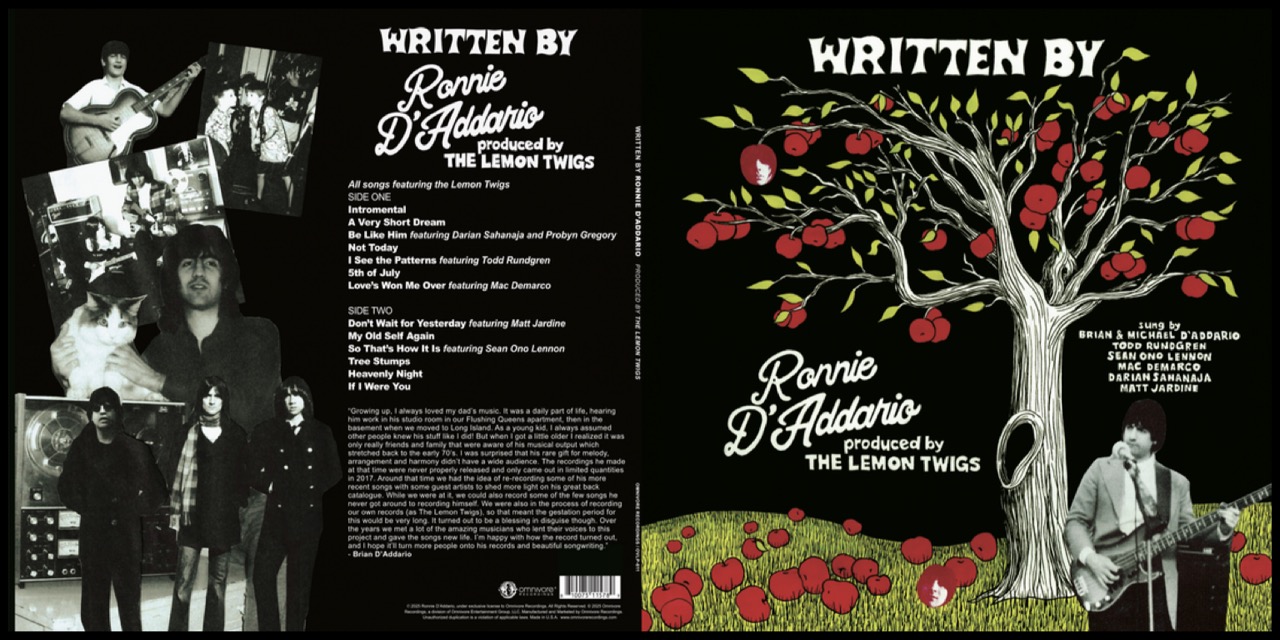 Plata er produsert av The Lemon Twigs, altså Brian og Michael, som også bidrar med enormt mye både når det gjelder vokalarbeid og traktering av en mengde instrumenter. Om noen hadde fortalt meg at «Written By» var et The Lemon Twigs-album, hadde jeg kjøpt det umiddelbart. Sagt med andre ord: pappa Ronnie (som har skrevet alle låtene) har fått usedvanlig godt hjelp av sine svært talentfulle sønner, og sånn sett er «Written By» et særdeles vellykket famileprosjekt i musikkens tjeneste.